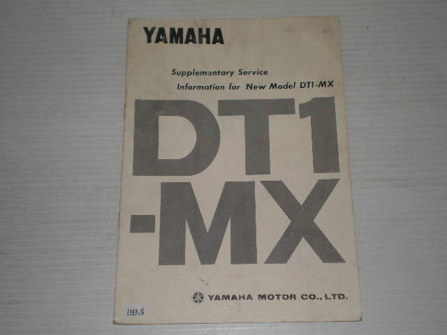 The Yamaha 250 DT1-MX is designed as a high performance motocrosser for racing purpose. The DT1-MX is converted into a fully equipped motocrosser through the use of DT1-E G.Y.T. parts and a few changes in the running gear. This Supplementary needs to be used in conjunction with the DT1-E Service Manual.
