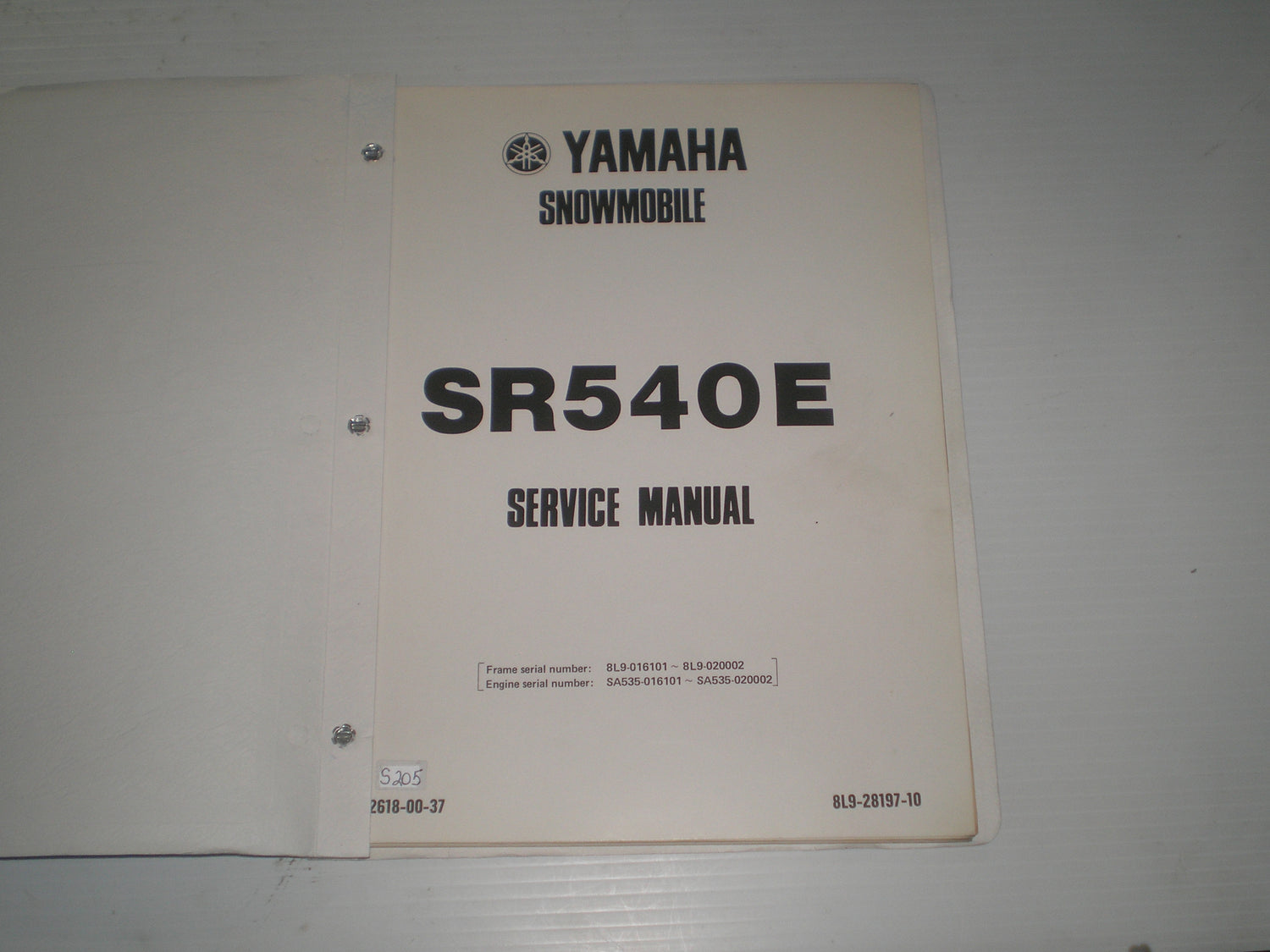 YAMAHA SR540 E SR-V 540 1981 Service Manual 8L9-28197-10 LIT-12618-00-37 #S205